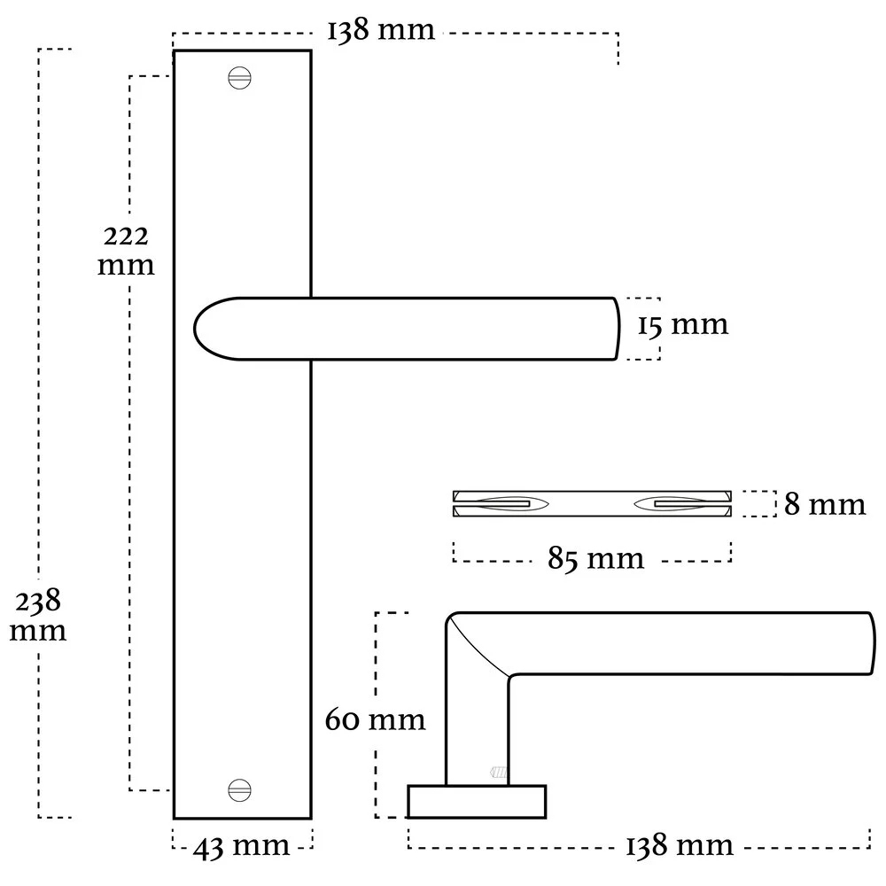 Compleet Installatiepakket: Bij de Deurklink Ferro wordt een compleet installatiepakket meegeleverd, inclusief schroeven, patentbouten, slotstift, inbusboutjes en een inbussleutel. Zo kun je direct aan de slag en genieten van jouw nieuwe deurklink.