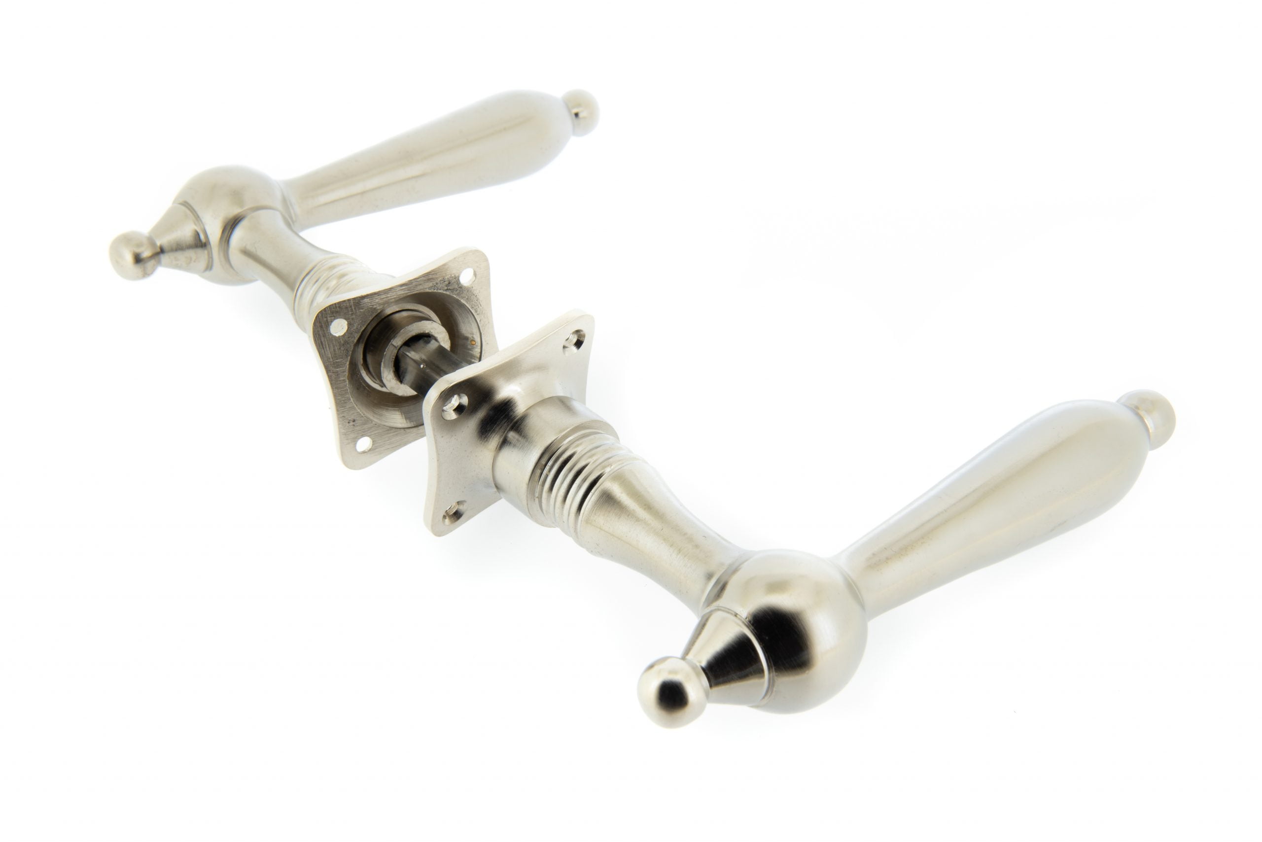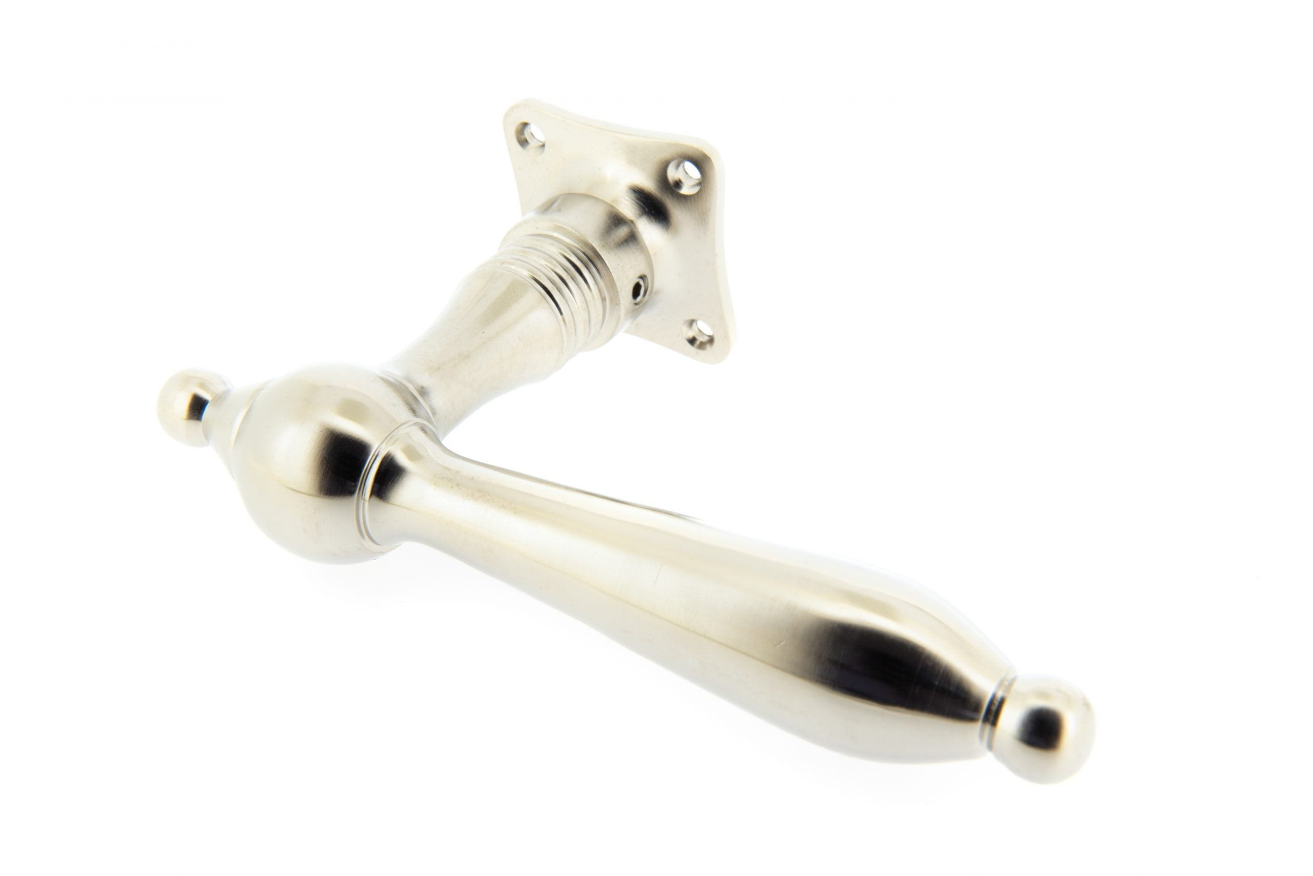 Alleen al bij het horen van een land of stad komen er gedachten naar boven drijven, zelfs wanneer je die locatie nog nooit zelf hebt bezocht. Denk bijvoorbeeld aan Oostenrijk of Wenen, dan denk je direct aan een tijd dat dames en heren met pruiken rondliepen, het meubilair is daar rijkelijk gedecoreerd met sierlijke details en op de dansvloer klinkt muziek van Amadeus Mozart. Cliché of niet, deze Deurenkruk Oostenrijk Nikkel Matt past perfect in dit plaatje, zonder kitscherig aan te voelen. En voel gerust, want deze elegante deurkruk is stevig genoeg om zonder handschoentjes aangepakt te worden.