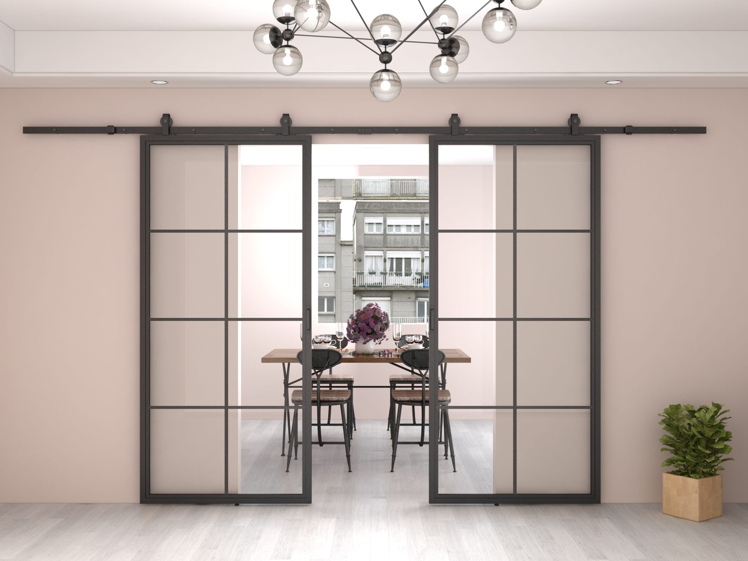 Dubbele stalen schuifdeur 8-vaks 235 x 100 cm helder glas