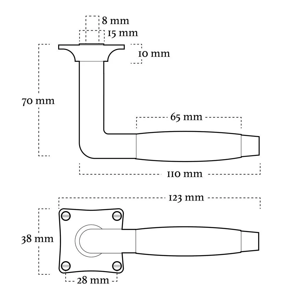 - Twee deurklinken (voor de voorkant en de achterkant van de deur)