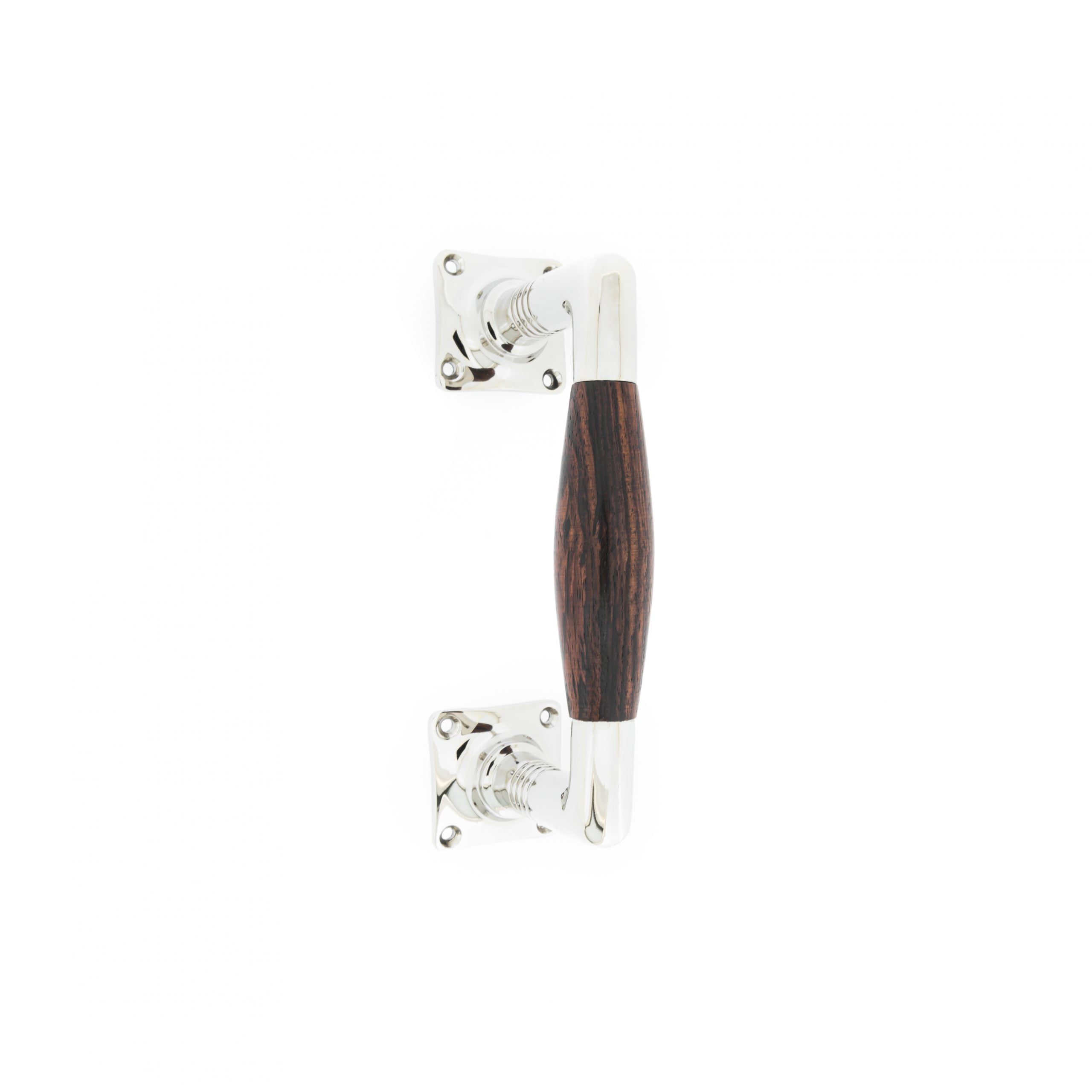 De greep is gemaakt van glanzend nikkel met palissanderhout en kan eenvoudig gemonteerd worden met de bijgeleverde schroeven.