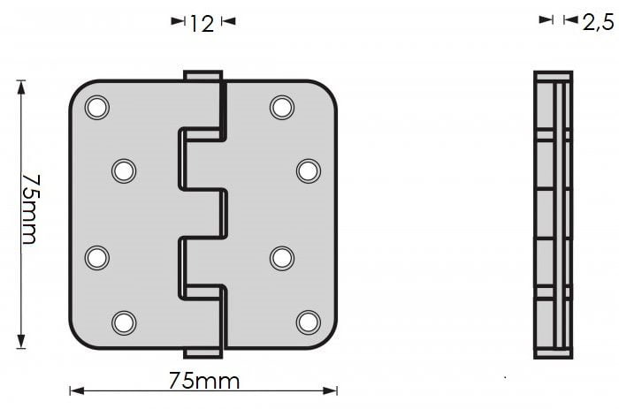 Zwart scharnier met schroeven 7,5 CM