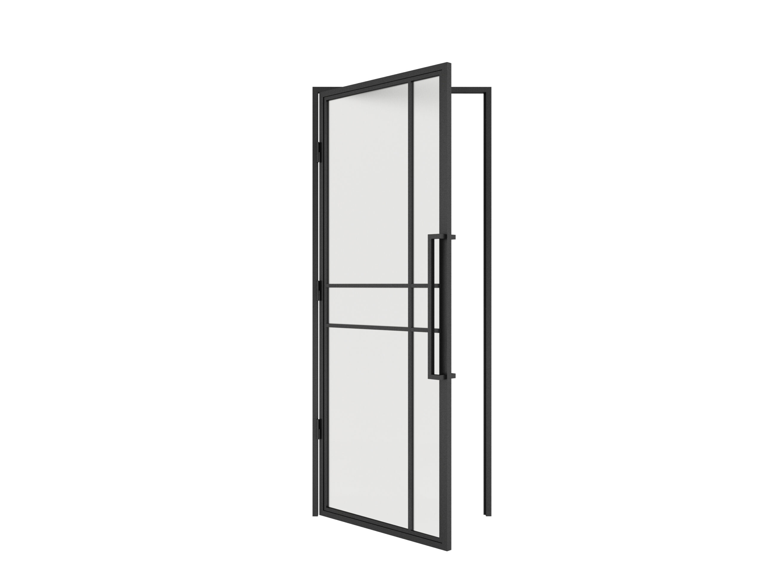 Deze stalen scharnierdeur met kozijn is één van onze toppers uit onze collectie stalen deuren. Zwarte stalen binnendeuren zijn een populaire keuze vanwege hun tijdloze charme en verfijnde uitstraling. Met hun diepe zwarte kleur voegen ze een vleugje elegantie toe aan elke ruimte. De deur is gemaakt van zwart, gepoedercoat staal en is voorzien van een moderne deurgreep. De stalen deur kan geleverd worden in een linksdraaiende of rechtsdraaiende variant en is voorzien van een magnetische sluiting. Verder kan de deur voorzien worden van helder glas, mat glas of rookglas. Met onze zwarte stalen binnendeuren bent u verzekerd van een investering die zijn waarde behoudt en jarenlang plezier biedt.