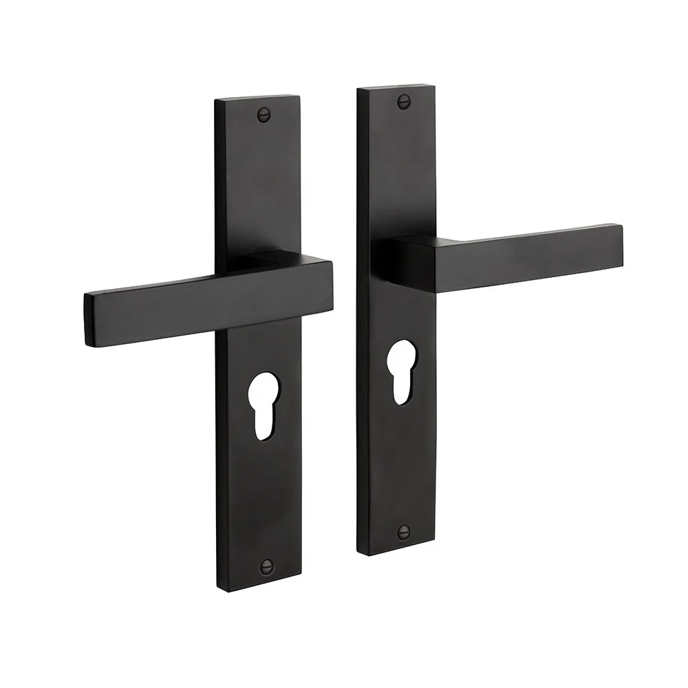 De deurklink Lusso op een rechthoekig schild en voorzien van een mat zwarte coating. Door de hoogwaardige zwarte poedercoating gaat de deurklink lang mee, om deze reden zijn wij voor een tijdloos ontwerp gegaan. Deze deurklink wordt per paar geleverd inclusief 2 schilden met profielcilindergat op PC maat 55mm.