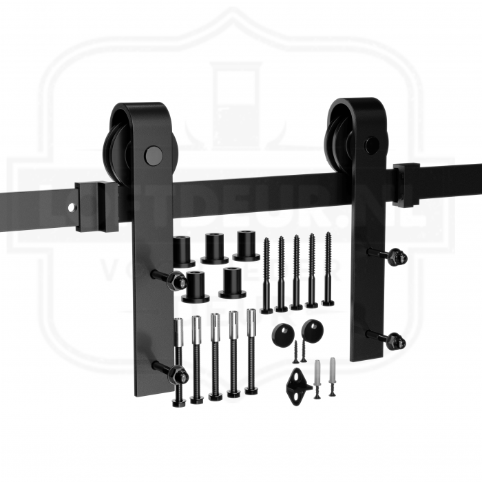 • 400cm – Rail bestaat uit 2 delen, die gekoppeld worden. De deur kan hier overheen rollen.