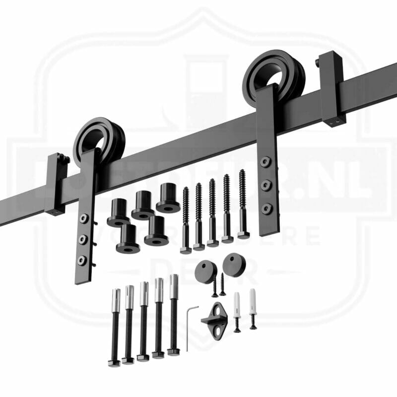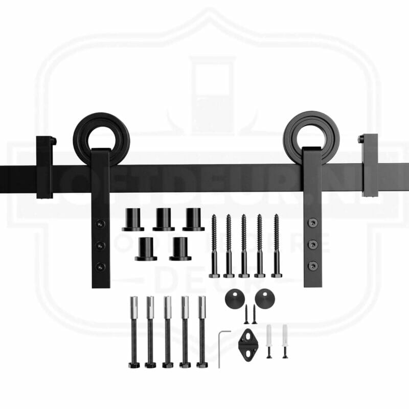 Het set van dit Schuifdeursysteem met Recht Design wordt compleet geleverd met alle onderdelen om een houten loftdeur aan de wand te bevestigen. De schroeven in het set zijn geschikt voor zowel gips als hout. Wanneer dit systeem gecombineerd wordt met een naturel houten schuifdeur van Loftdeur zul je de ruimte direct zien transformeren. De neutrale ontwerpstijl maakt het Schuifdeursysteem met Recht Design geschikt voor de meeste interieur stijlen.
