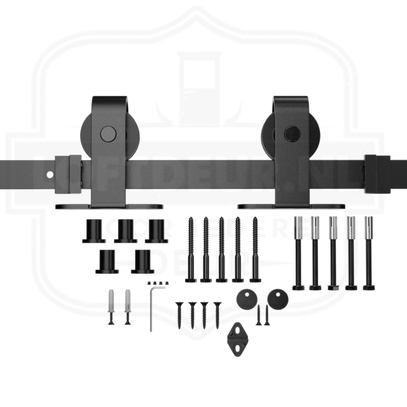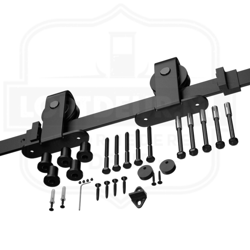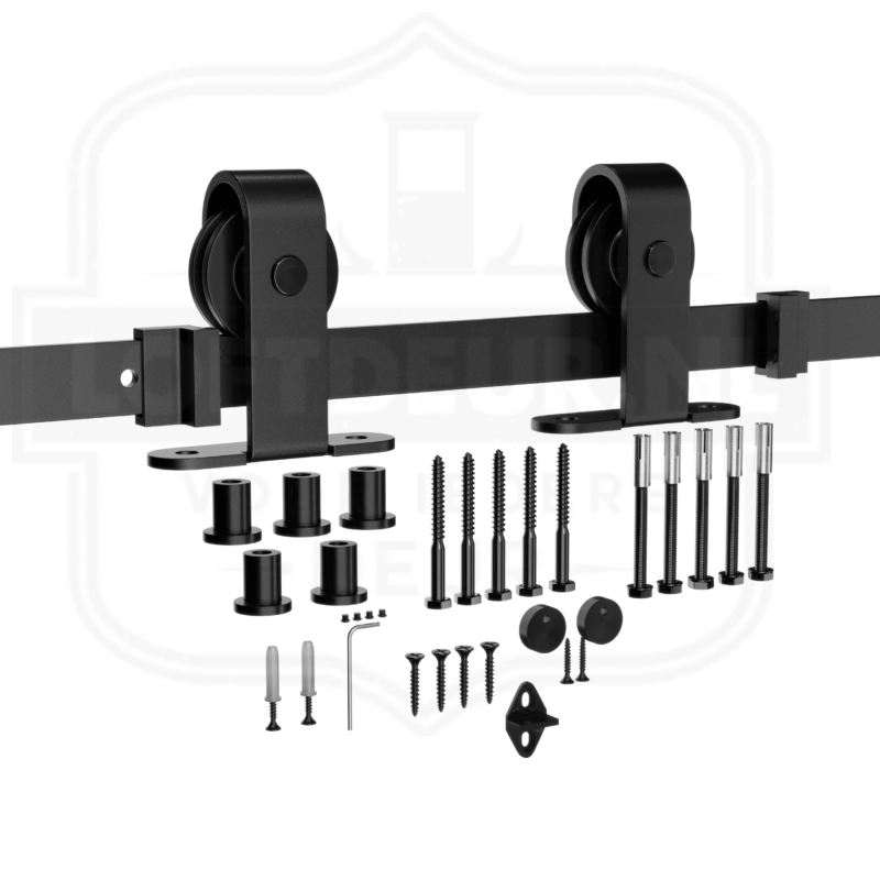 Normaal gesproken wordt het schuifdeursysteem aan de zijkant van de deur gemonteerd. Als de deur te dik is voor een normaal systeem kun je kiezen voor dit schuifdeursysteem waarbij de schroeven aan de bovenzijde bevestigd worden. Je kunt met stevige bouten vrijwel elke deur bevestigen. Dankzij de soepele rollers en de stalen rails schuiven zelfs deze massieve deuren moeiteloos.