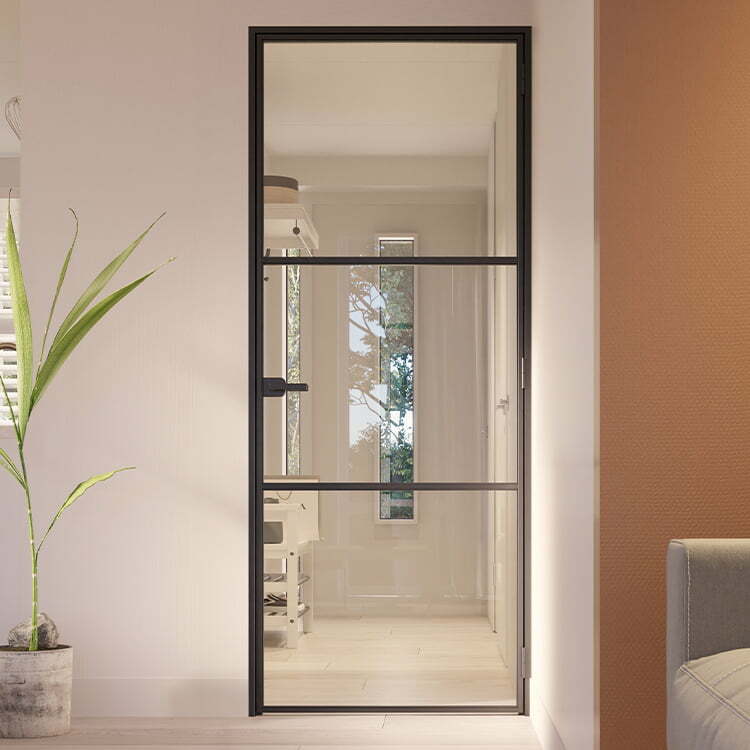 Stalen scharnierdeur Slimline 3-vaks klinksluiting rechtsdraaiend helder glas