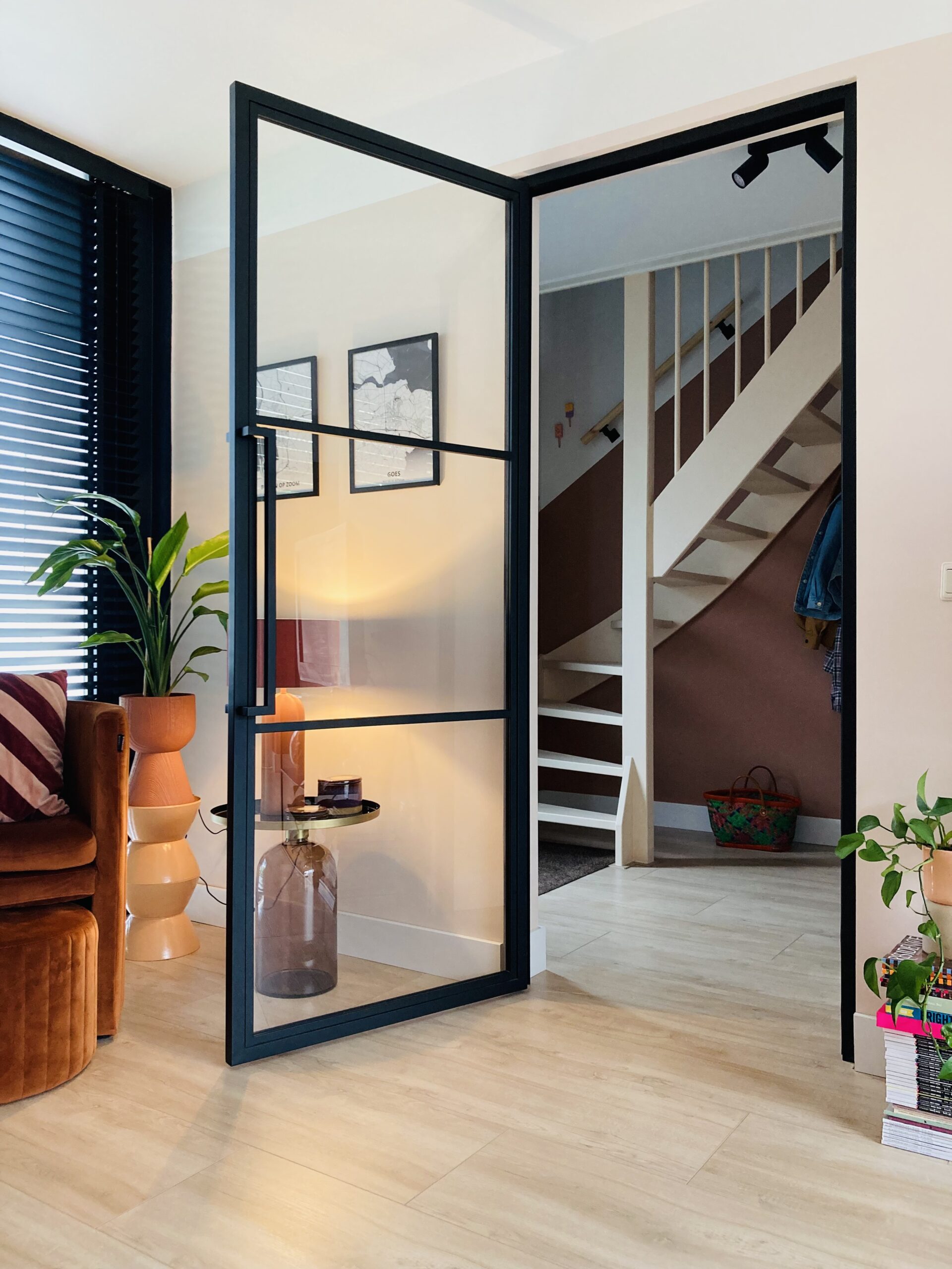 Onze stalen scharnierdeur is een van de populairste producten in onze collectie stalen deuren. Zwart stalen binnendeuren zijn een populaire keuze vanwege hun tijdloze charme en verfijnde uitstraling. Met hun diepzwarte kleur voegen ze een vleugje elegantie toe aan elke kamer De deur is gemaakt van zwart gepoedercoat staal en is voorzien van een moderne magneetgreep. De stalen deur is zowel links- als rechtsdraaiend leverbaar en voorzien van magneetsluiting. Daarnaast kan de deur ook voorzien worden van helder glas, mat glas of rookglas) Met onze zwartstalen binnendeuren heeft u de zekerheid van een investering die zijn waarde behoudt en jarenlang woon- en speelplezier biedt. Het materiaal van onze zwartstalen binnendeuren is gepoedercoat staal (RAL 9005). Het poedercoaten van het staal zorgt ervoor dat de deur krasbestendig is en niet snel zal beschadigen. Goed om te weten: de glazen deuren bevatten 4 mm veiligheidsglas. Dit glas blokkeert UV-stralen en heeft een geluidsabsorberende werking. Het is dus niet zo warm als de zon schijnt