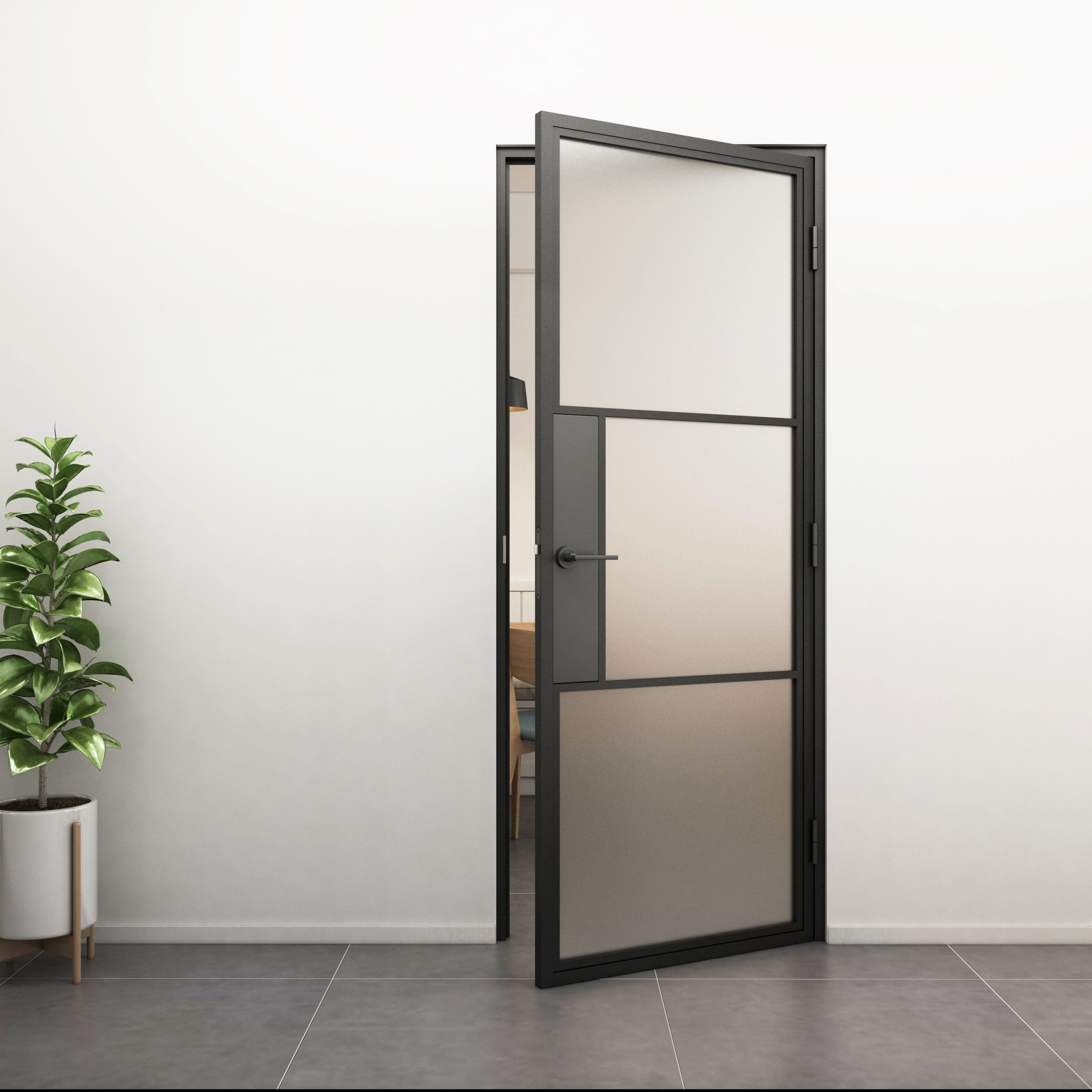 Stalen scharnierdeur met klink 211.5×83 linksdraaiend rookglas