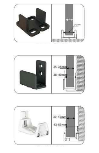 Deze vloergeleiding is geschikt voor schuifdeuren zonder groef. Het wordt met de meegeleverde schroeven en pluggen aan de vloer bevestigd.